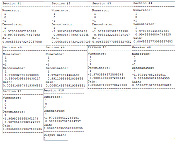 Для данного фильтра, 20 порядка, секций 10, т.е. L=10. В алгоритме (п.2,