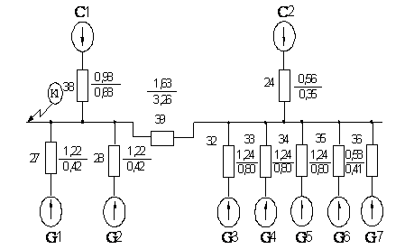 шинах (фазные и нулевой последовательности) и токи на линиях (тоже фазные и