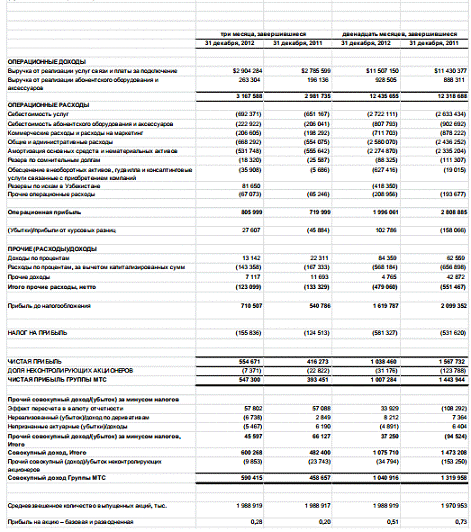 Проведенный анализ ОАО "МобильныеТелеСистемы"