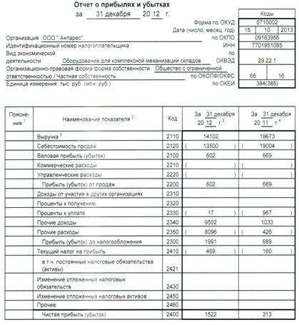 отчет о прибылях и убытках (форма № 2);