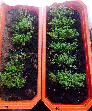 эксперимента по выращиванию семян кресс-салата на почве, взятой из
