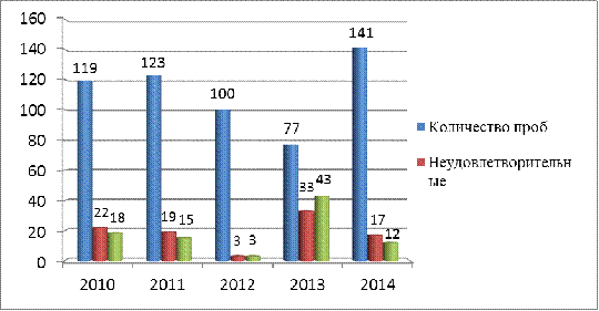 Вывод: процент неудовлетворительных проб за 3 года, в период