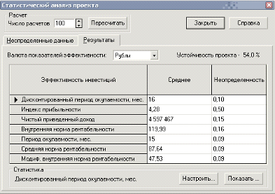проекта методом Монте-Карло с числом расчетов 100.