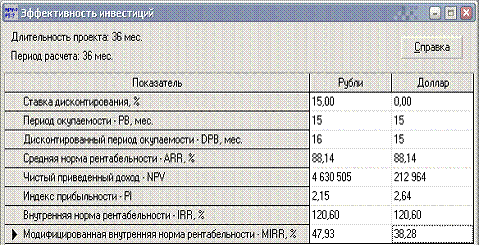 длительность проекта - 3 года. Период окупаемости 5 месяцев. На момент