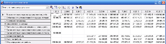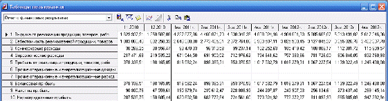 Таблица финансовых результатов.