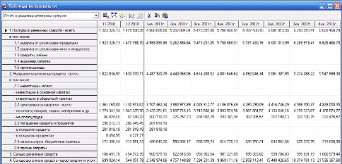 Таблица движения денежных средств.
