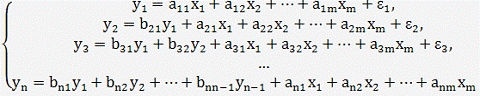 система взаимозависимых уравнений. В ней одни и те же зависимые переменные в