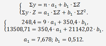 в которой коэффициенты при х определяются методом наименьших квадратов.
