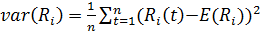 Дисперсия доходности ценной бумаги i