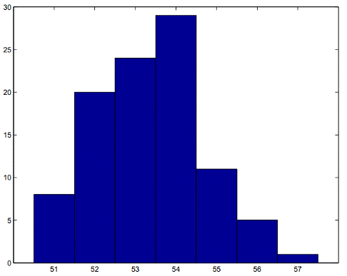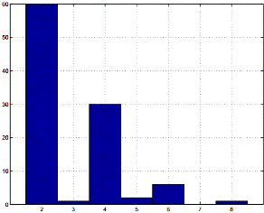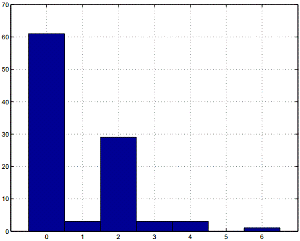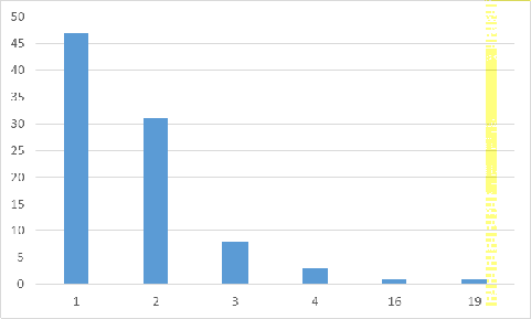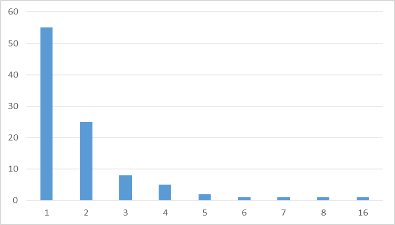 гистограмму, показывающую, сколько раз степень «1», появляющаяся с определенной
