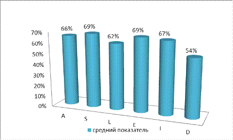 уровню. По шкале «интегральность» разница в процентном соотношении составило 6%