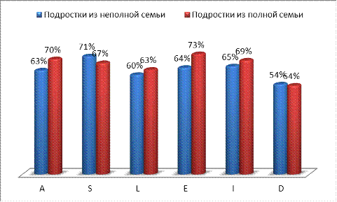 (у подростков из полных семей эта шкала выше по сравнении с подростками из