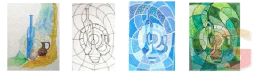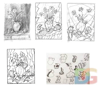 был выполнен анализ графические поиски композиции натюрморта и поиск цветовых