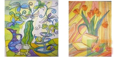 натюрморт, используя основные законы цветоведения и возможности декоративной