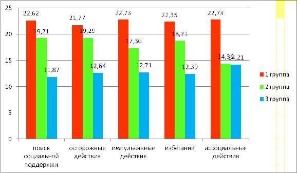 поиск социальной поддержки, во 2 группе такие стратегии, как осторожность и