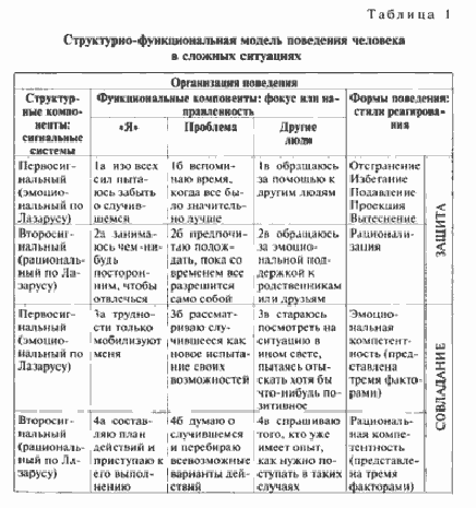 рациональное и эмоциональное реагирование, отстраненность и избегание. При этом
