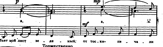 к концу произведения, и темп, вначале спокойный, а в середине взволнованный и