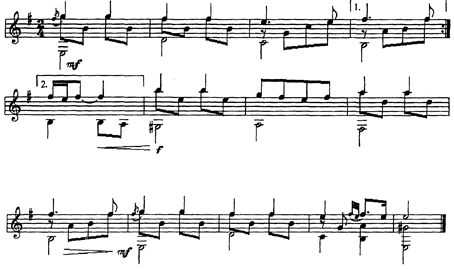 струне, далее он играет ту же мелодию, но уже на второй струне, далее, если