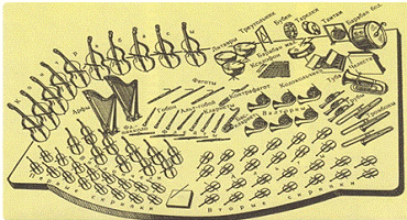 струнна, духова та мідна - були вже оформлені повністю. У струнну міцно увійшли