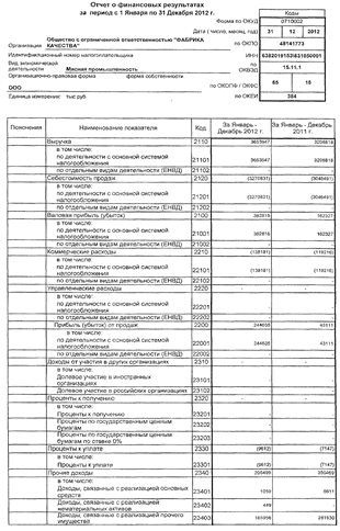 характеристика ООО "ФАБРИКА КАЧЕСТВА"