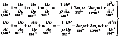 формулы векторного анализа получим составляющие силы Кориолиса по осям