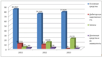 внеоборотные активы: 83,967% - в 2011 году, 74,364% - в 2012 году, 77,929% - в