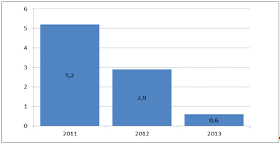 на 1,41%), а в 2013 году по сравнению с 2012 годом сократилась до 5 999 тыс. р.