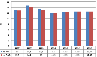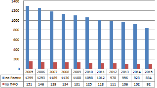 в Приволжском федеральном округе в 2005 - 2015 годах