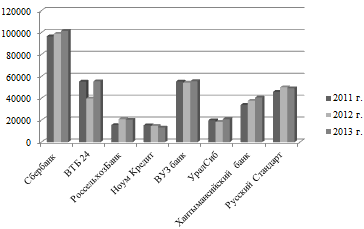 кредитными услугами Сбербанка в 2013г. возросло на 18050 чел. по сравнению с