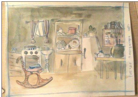Для объемности пространства некоторые предметы рисуются,