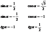 простейшие свойства тригонометрических функций; формулы приведения; значения