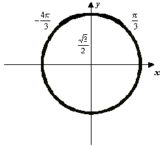 на единичной окружности точки Pt, для которых соответствующие значения t