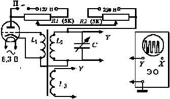 выпрямителя повышают напряжение на аноде до 100-150В. На экране осциллографа