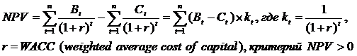 доходность планируемых затрат по проекту с учетом фактора времени (формула