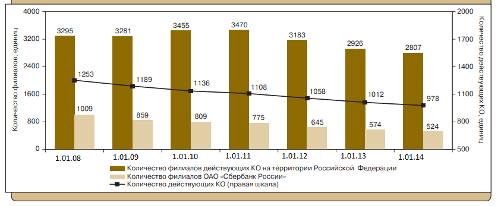 кредитно-кассовых офисов - с 1389 до 1725, операционных офисов - с 2994 до