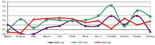 прироста потребительских цен в 2013 году до 5 - 6%, в 2014 и 2015 годах - до 4