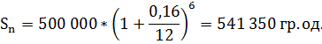 в банк на півроку с щомісячним нарахуванням складних відсотків по ставці 16%