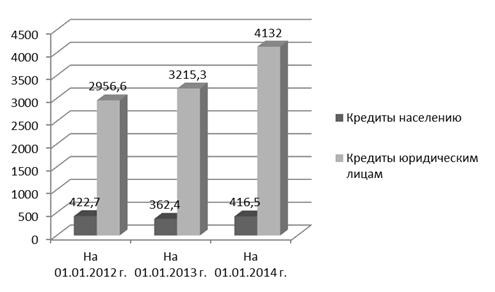 сумма таких кредитов по состоянию на 1 июля 2014 г., составила 4132,0 млрд р.,