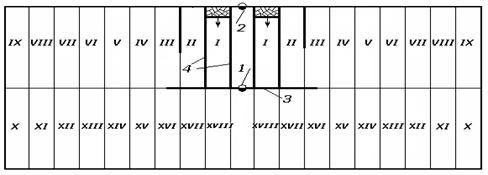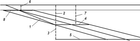 поверхности до нижней границы первого этажа по падению пласта примерно в центре