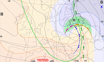 − при меридиональной форме циркуляции зимой над территорией