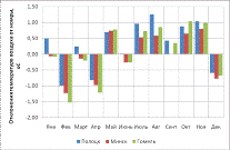 аномалии температуры воздуха невелики и составляют −1,5…−2,8 оС.
