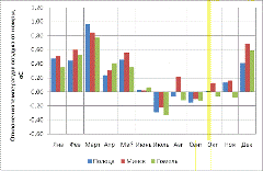 погоду в зимний сезон, положительные отклонения среднемесячной температуры