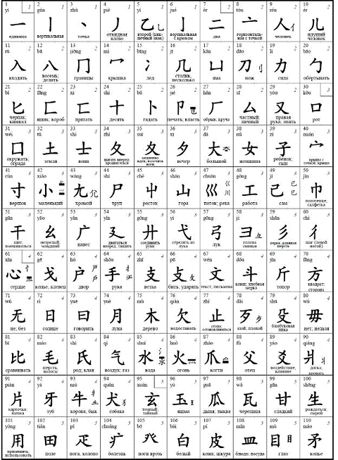 Рисунок 4. Таблица иероглифических ключей.