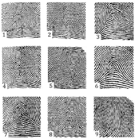 узор, относящийся к дуговым; 9 - аномальный узор.
