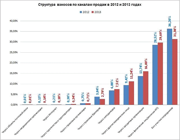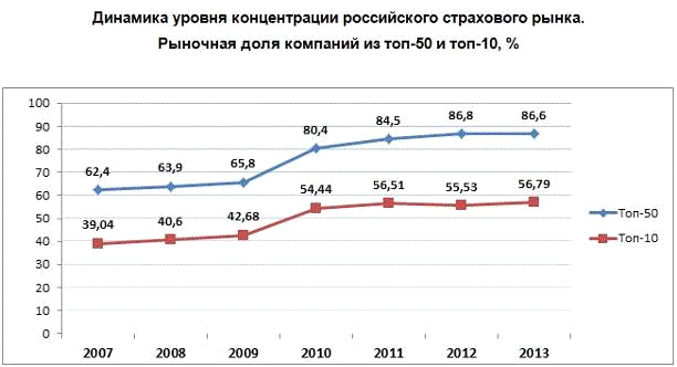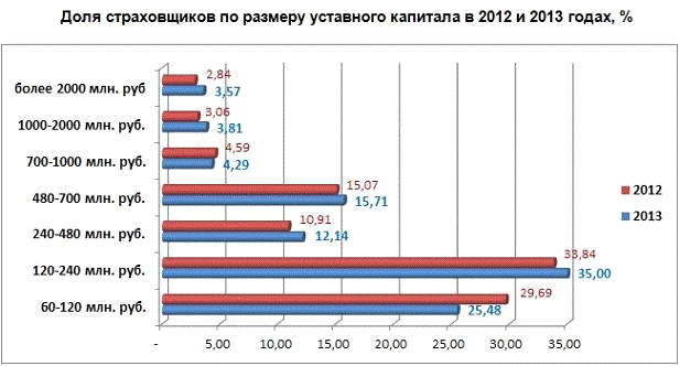 2012 году). Одновременно увеличились доли страховых организаций с размером
