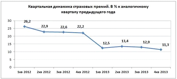 При этом, квартальная динамика страхового рынка РФ в 2013 году показала