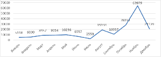 При рассмотрении таблицы в апреле месяце наблюдается пик финансовой