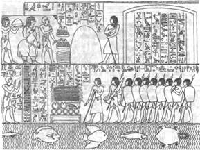 Рис. 3. Фреска с изображением трудовой жизни египтян.