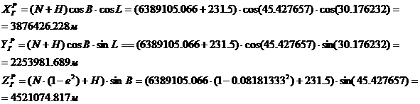 в центре референц-эллипсоида к прямоугольным гринвичским координатам с началом