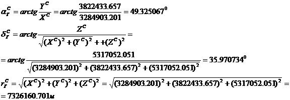 экваториальных координат ИСЗ по данным его топоцентрических координат